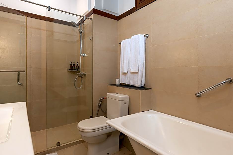 Providing free toiletries and bathrobes, this twin/double room includes a private bathroom with a bath, a shower and a hairdryer. The air-conditioned twin/double room provides a flat-screen TV with cable channels, a tea and coffee maker, a seating area, a wardrobe as well as garden views.
